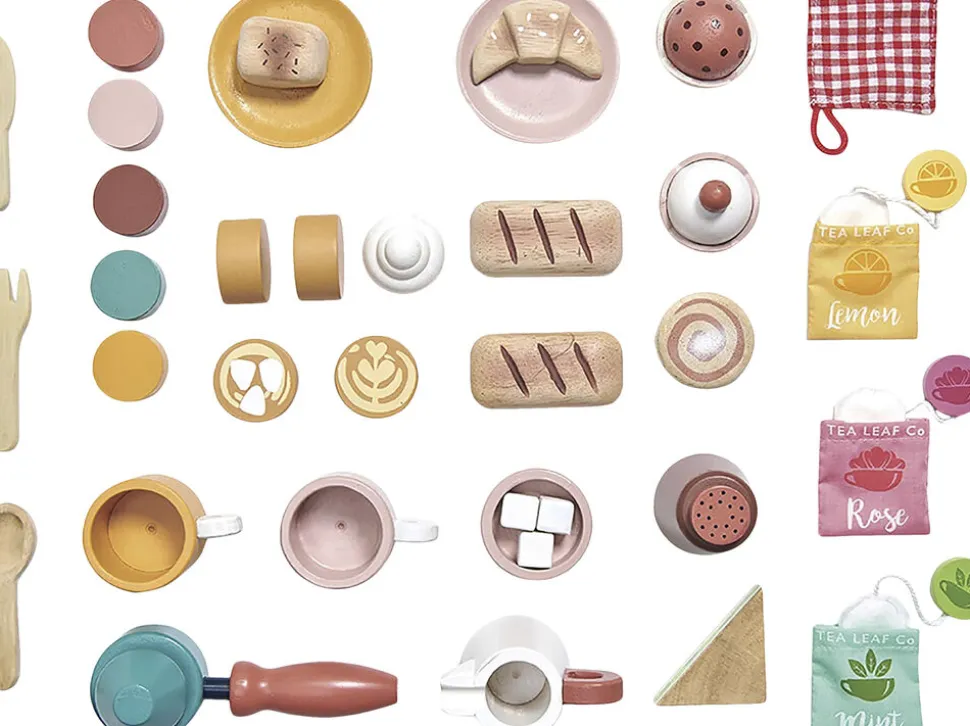 Kaffebar legecafé med masser af tilbehør, der inviterer til kreativ leg for 2 eller flere børn.
