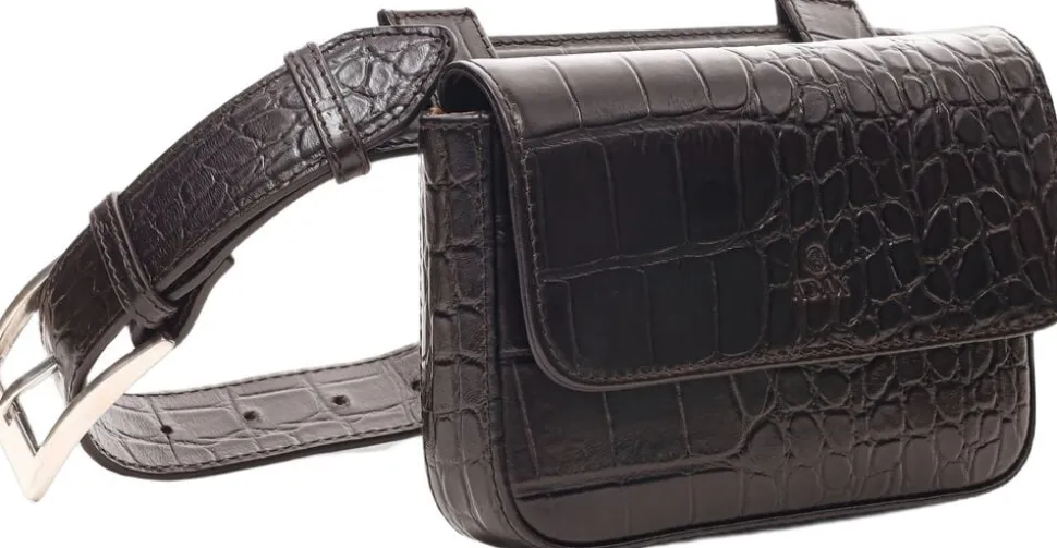 Elna bæltetaske i croco-præget læder fra Adax. Elna bæltetasken er en skøn lille taske med en justerbar strop. Tasken leveres med en flaplukning med magnetisk lukning. Tasken har et åbent rum med en indvendig åben lomme. Der medfølger en lille indkøbspose samt en garantifolder, der kan bruges som kortholder. Posen plejes med Adax beskyttelsesSpray.