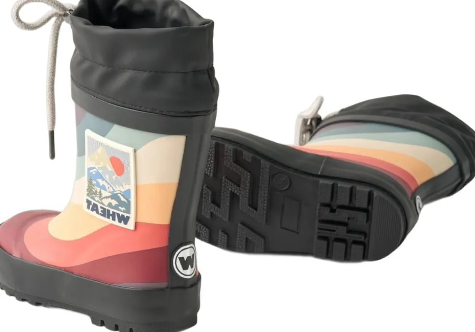 Uundværlige termo gummistøvler med højt skaft til dit barn. – Blødt uld- og genanvendt polyesterfoer – Højt skaft – Refleks – Wheat signatur print eller stribet Wheat’s termo gummistøvler er lavet i naturgummi og er en tro følgesvend, når det kommer til børn. Termo gummistøvlerne er foret med en kombination af uld og polyester for ekstra varme og fungerer perfekt i efterårs- og vintersæsonen. De har et simpelt look med Wheat signatur print eller striber samt et Wheat-logo bagpå, der desuden er en refleks. Termo gummistøvlerne har et bredt stykke vandtæt stof øverst, som kan strammes, så støvlerne sidder tæt omkring dit barns ben. Støvlerne har aftagelige indlægssåler, de er normale i størrelsen og er lette for dit barn at tage på. Anbefalet tillæg for vækst: 1-1,5 cm Indvendig måling: Størrelse 22 = 13,9 cm Størrelse 23 = 14,6 cm Størrelse 24 = 15,2 cm Størrelse 25 = 15,8 cm Størrelse 26 = 16,4 cm Størrelse 27 = 17,2 cm Størrelse 28 = 17,8 cm Størrelse 29 = 18,6 cm Størrelse 30 = 19,0 cm Størrelse 31 = 19,9 cm Størrelse 32 = 20,6 cm Størrelse 33 = 21,2 cm Størrelse 34 = 21,8 cm Størrelse 35 = 22,4 cm — Ydermateriale: Naturgummi Foring: 30% Naturuld, 70% Genanvendt PolyesterEssensielle termogummistøvler med høyt skaft og fleecefôr for barnet ditt. – Mykt polyesterfôr – Høyt skaft – Håndtegnet allover-trykk – Reflektor Wheat’s termogummistøvler er laget av naturgummi og er et essensielt plagg i barnets garderobe. Termogummistøvlene er foret med en kombinasjon av ull og polyester for ekstra varme og er perfekte for høst- og vintersesongen. De har et enkelt utseende med avtakbare såler og Wheat-logoen, som en reflektor, på baksiden. Termogummistøvlene har et bredt stykke vanntett stoff øverst som kan knytes rundt for at støvlene skal sitte tett rundt barnets ben. De er vanlig i størrelsene og er enkle for barnet ditt å gli på. Disse gummistøvlene er tilgjengelige med unike håndtegnede allover-trykk laget av Wheats interne designteam. Anbefalt voksetillegg: 1-1,5 cm Veil. indre mål: Størrelse 22 = 13,9 cm Størrelse 23 = 14,6 cm Størrelse 24 = 15,2 cm Størrelse 25 = 15,8 cm Størrelse 26 = 16,4 cm Størrelse 27 = 17,2 cm Størrelse 28 = 17,8 cm Størrelse 29 = 18,6 cm Størrelse 30 = 19,0 cm Størrelse 31 = 19,9 cm Størrelse 32 = 20,6 cm Størrelse 33 = 21,2 cm Størrelse 34 = 21,8 cm Størrelse 35 = 22,4 cm — Yttermateriale: Naturgummi Fôr: 30% Naturlig ull/70% Resirkulert polyester