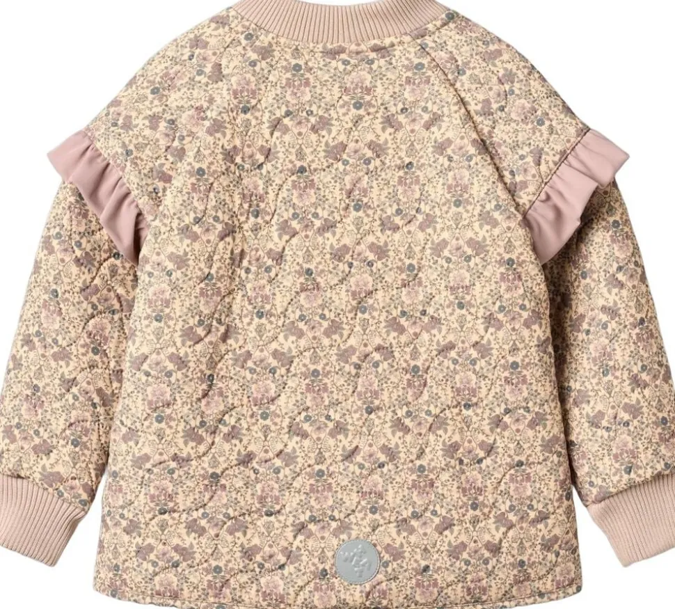 Termojakke med print, flæsedetaljer og blødt plysfoer til børn. – Ribkrave – Ribmanchetter – Åbne sidelommer i sidesømmen – Raglanærmer – Påsyede flæser på skuldrene – Lynlås med hagebeskytter – Kantbånd langs lynlåsen – Flaglabel i siden – Foret krop med blødt plys – Refleksbadge bagpå Termotøj til børn er en sand hverdagsfavorit. Det bløde og lette materiale gør det behageligt for barnet at bevæge sig og lege i. Termojakken er fremstillet i 100% genanvendt polyester og kan bruges som et lag indenfor eller som praktisk overgangsovertøj udendørs. Jakken er ikke vandtæt, men har en vandafvisende overflade og kan godt modstå let fugtigt vejr. Termojakken er ideel i overgangsperioder, hvor barnet har brug for let overtøj, eller som et ekstra lag under regntøj eller teknisk overtøj på køligere dage. — – 3-lags materiale for ultimativ isolering – Vandafvisende (ikke vandtæt) – Standard 100 by OEKO-TEX® – BIONIC FINISH ECO (Bio finish) – PFC-fri (Fri for perfluorerede stoffer) – Produktet er GRS-certificeret (Global Recycled Standard) — – 100% Genanvendt polyester – Plysfoer: 100% Genanvendt polyesterNy termojakke med volanger og trykk for barn. – Ribbestrikket krage – Ribbet mansjett – Åpen lomme i sømsiden – Volanger på skuldrene – Senkede skuldre – Glidelås med hakebeskyttelse – Reflekser Termobekledning for barn er en ekte hverdagsfavoritt, da det myke og lette materialet gjør det behagelig å bevege seg og leke i. Termojakken er produsert i 100% resirkulert polyester og kan brukes som et koselig lag innendørs og som praktisk overgangsyttertøy. Den er ikke vanntett, men vannavstøtende. Termojakken kan enkelt styles med matchende termobukser eller du kan mikse og matche med en av våre andre termobukser i ensfargede eller mønstrede varianter for å fullføre antrekket. Den er flott for mellom sesongene, når barnet ditt trenger noe lettere yttertøy eller som et ekstra lag under regntøy eller teknisk yttertøy på kaldere dager. — – 3-lags materiale for ultimat isolasjon – Vannavstøtende (ikke vanntett) – Standard 100 by OEKO-TEX® – Fluorfri vann- og smussavvisende finish (BIONIC-FINISH® ECO) – PFC-fri (Fri for per- og polyfluorerte kjemikalier) – GRS-sertifisert (Global Recycled Standard) — – 100% Resirkulert polyester – Plysfôr: – 100% Resirkulert polyester