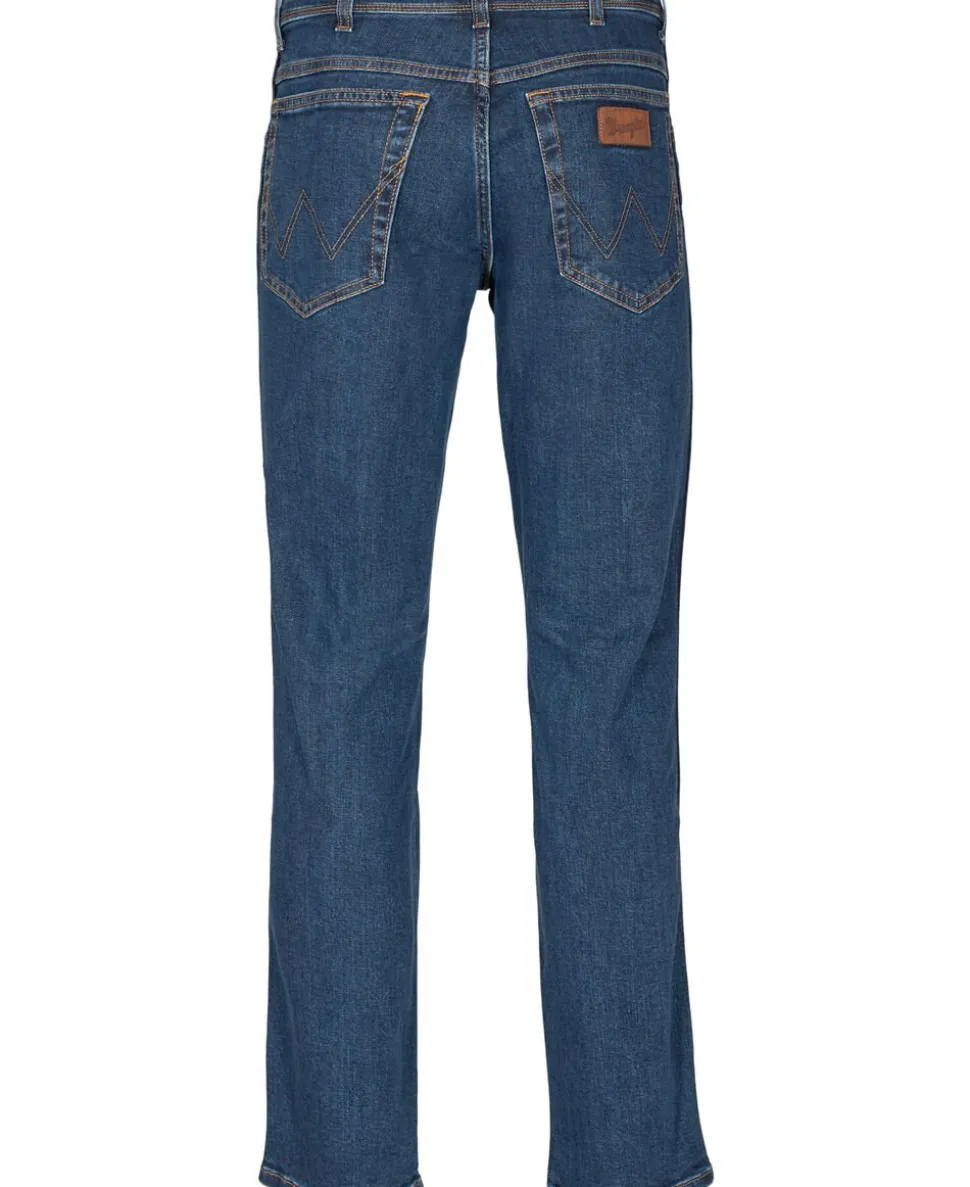 Jeans fra Wrangler i en blød og stretchy bomuldskvalitet. Buskerne er en klassisk 5-lomme model med knap- og lynlåslukning på fronten, syningsdetaljer samt ‘Authentic Straight Fit’. Et par klassiske jeans i en skøn kvalitet.