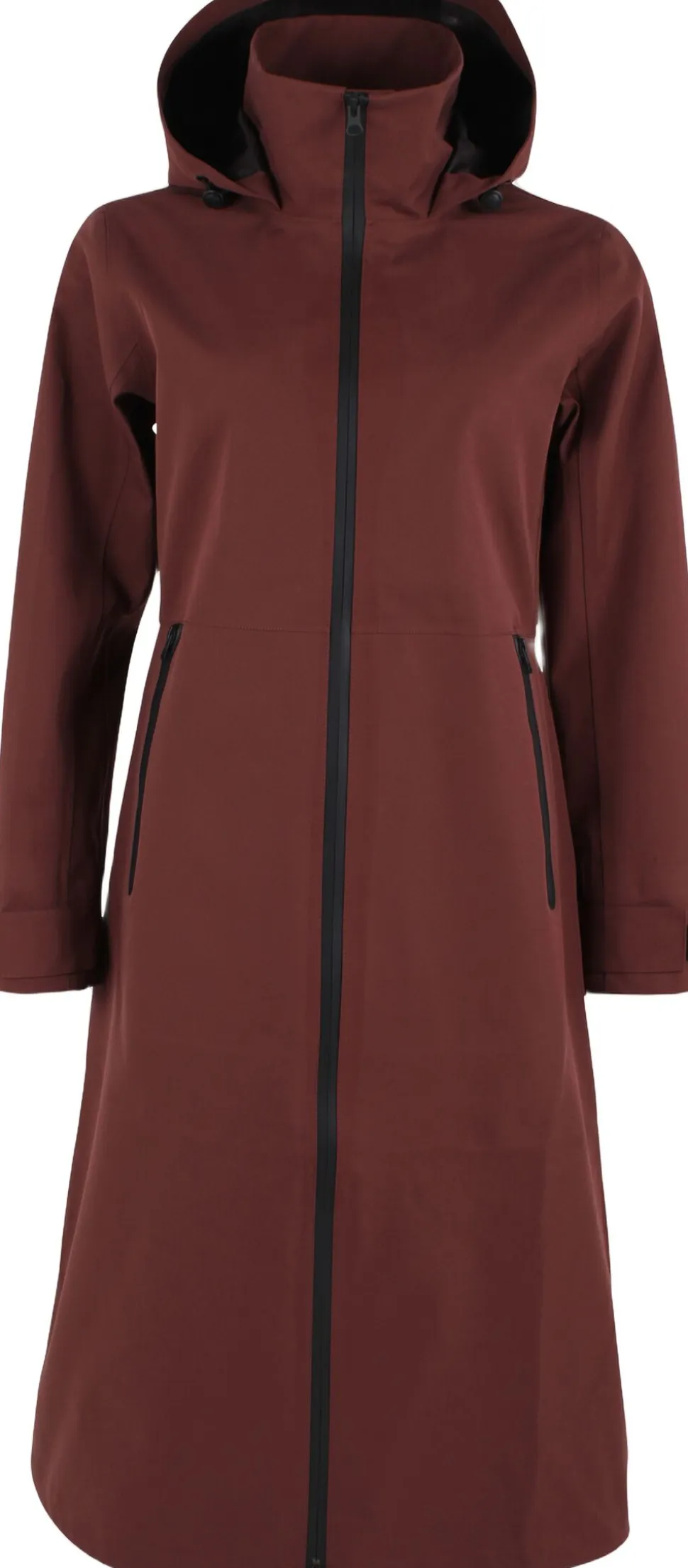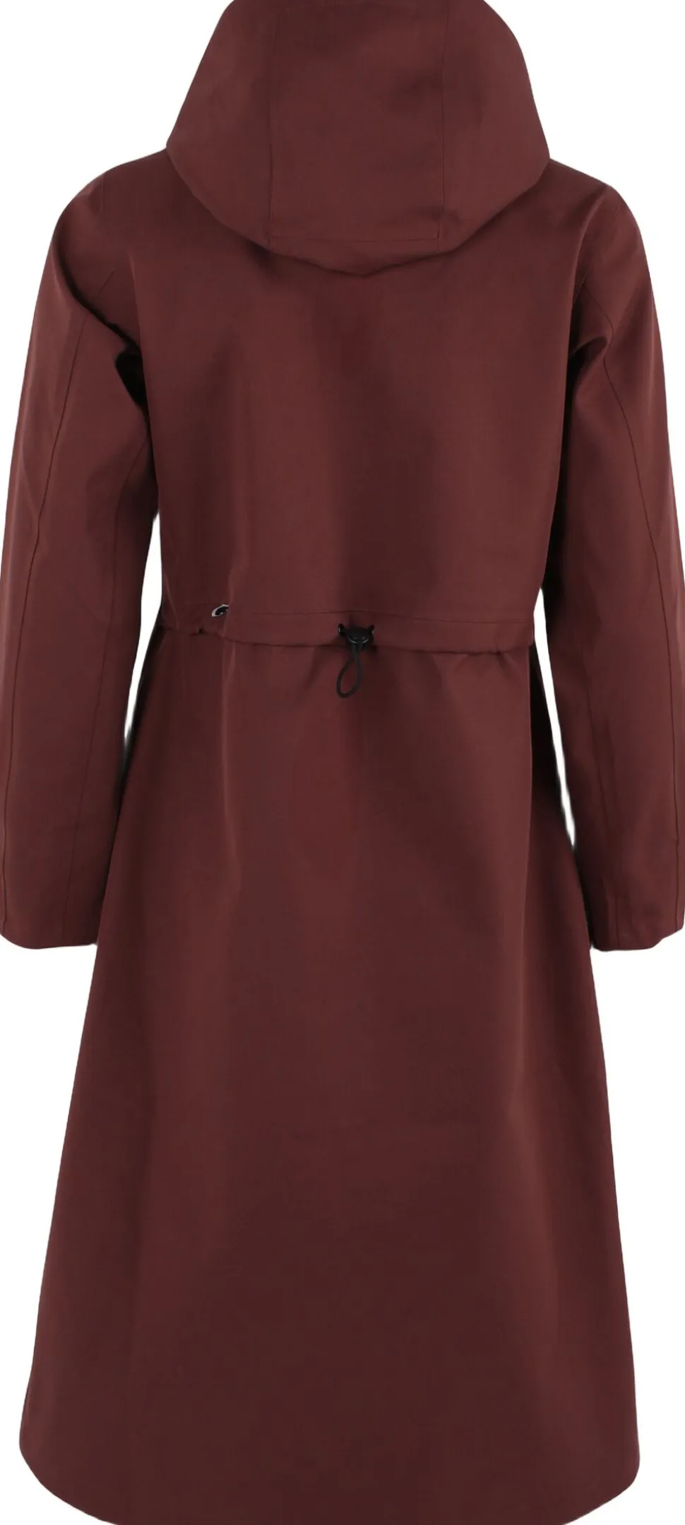 Denne frakke har en tynd elastisk og blød lycra-ribkant ved håndleddet, så vinden holdes ude. Den har en indvendig løbegang i livet, der kan justeres bagpå, således at man kan taljere frakken efter behov. Frakken er figursyet i snittet.