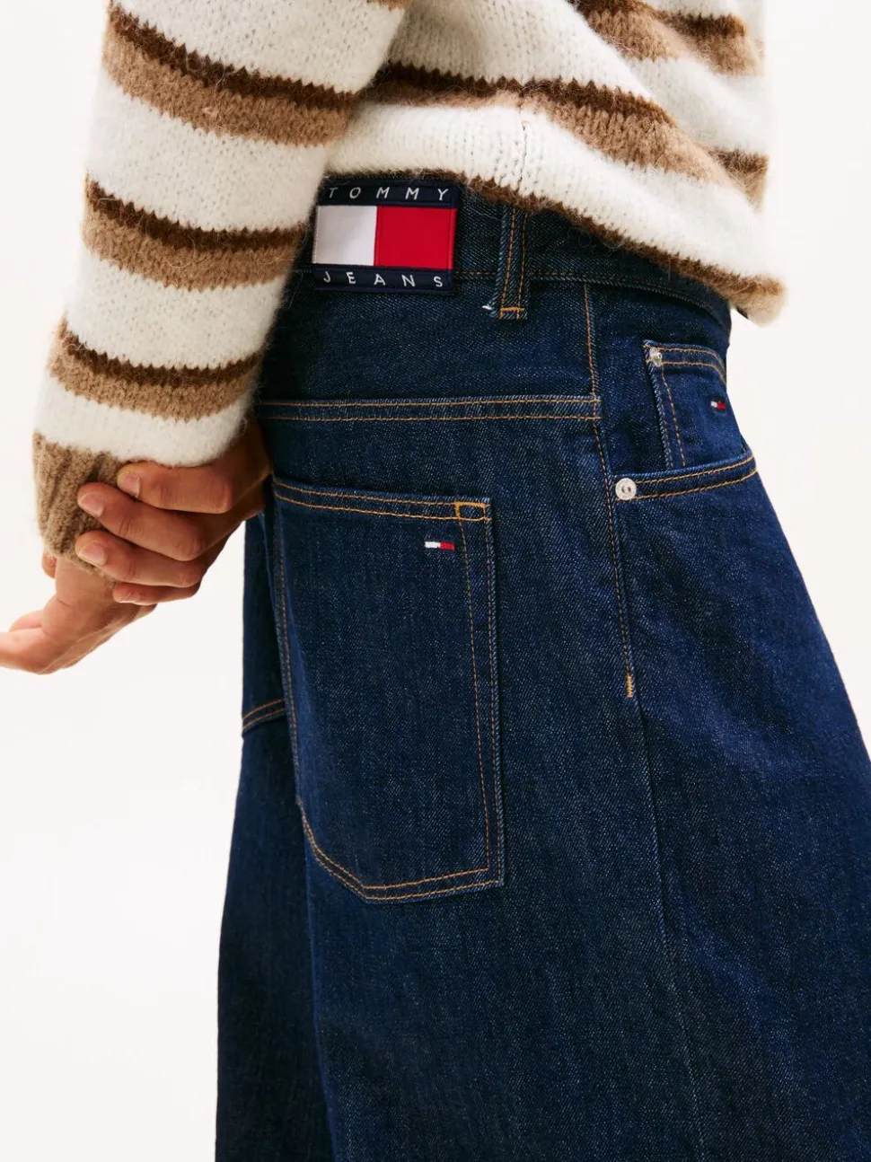 Inspired by laid-back street style, our Theo jeans are cut to a loose fit that brings a little edge to your everyday outfits. Embrace the spirit of heritage-inspired denim in these loose-fitting jeans, complete with turn-up hems for a true vintage aesthetic. Highlights include stretch cotton denim, zip with button closure, five-pocket styling, turn-up hems, Tommy Jeans branding, and Tommy flag embroidery on coin and back pockets.