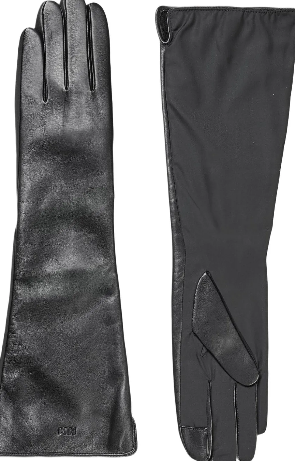 Lange handsker med blødt læder på håndryggen og blødt, fleksibelt stof på håndfladen.