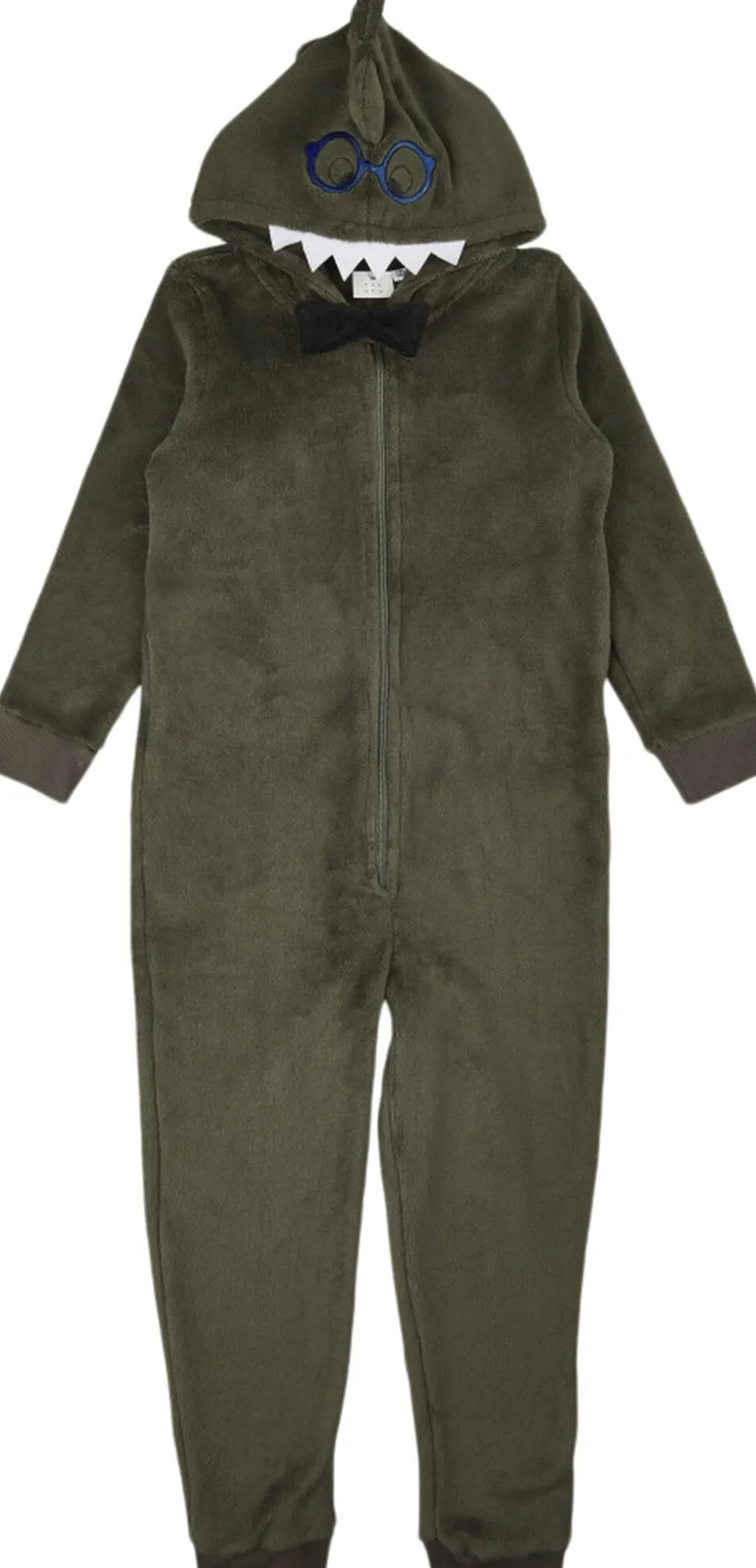 Kom ned i gear og slap af i denne hyggelige THE NEW fleecedragt med krokodille detaljer. Det er en blød og plysset heldragt, der er perfekt til hjemme- eller feriehygge. Den kan også anvendes som nattøj til de meget kolde nætter. Med sine søde og charmerende krokodille detaljer er den en fantastisk gave til den lille dreng. – Løs og afslappet pasform. – Mørkegrøn fleece af 100% polyester. – Hætte med broderi af et par øjne med briller og påsyede krokodille takker og tænder, samt en sort butterfly. – Lynlåslukning med lynlåsgarage. – Elastiske manchetter ved hænder og fødder for en stilfuld og behagelig pasform.