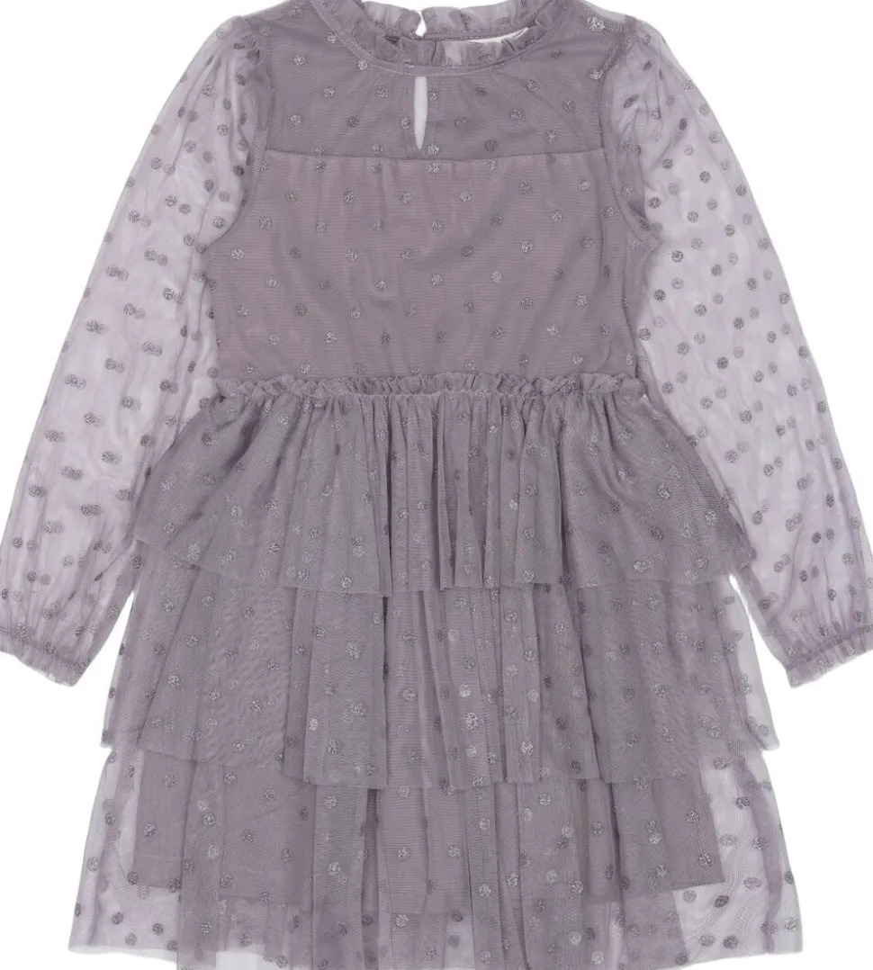 Fortryllende smuk langærmet kjole med flæser fra THE NEW, der er dekoreret med små prikker over hele kjolen. Denne meshkjole fra THE NEW har tynde, transparente ærmer og en underkjole lavet af blødt og åndbart materiale. Det er en fantastisk smuk og glamourøs festkjole, perfekt til festlige anledninger. – Kort kjole, der slutter lige over knæene. – 3 lag flæser i skørtet giver kjolen et ekstra fyldigt, feminint og festligt look. – Elastik ved håndleddene. – Slids med elastisk knaplukning i halsen.