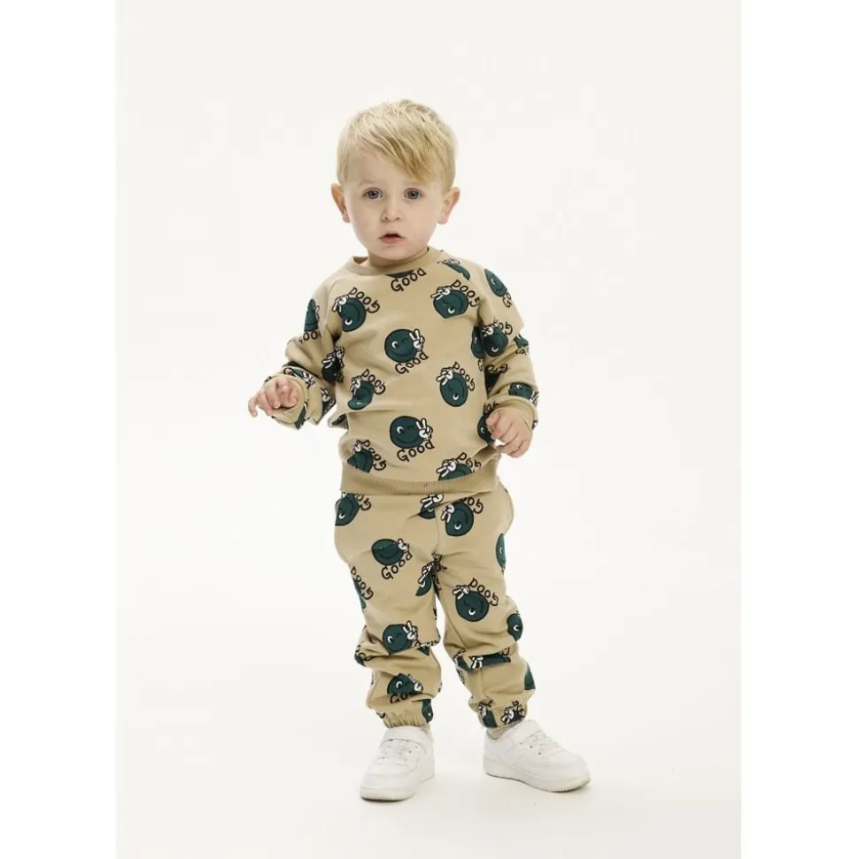 Charmerende babysweatshirt fra THE NEW siblings med all-over-print af en blinkende smiley og teksten “Good”. Denne sweatshirt er perfekt til både hverdagsbrug og hyggelige weekender. Kombiner den med de matchende TNSTPhil sweatpants for et afslappet look. – Normal pasform – Lange ærmer – Rund halsudskæring – AOP af smiley og teksten “Good” – Ribbede kanter ved halsudskæring, ærmer og bund – GOTS Organic certified by CU842535
