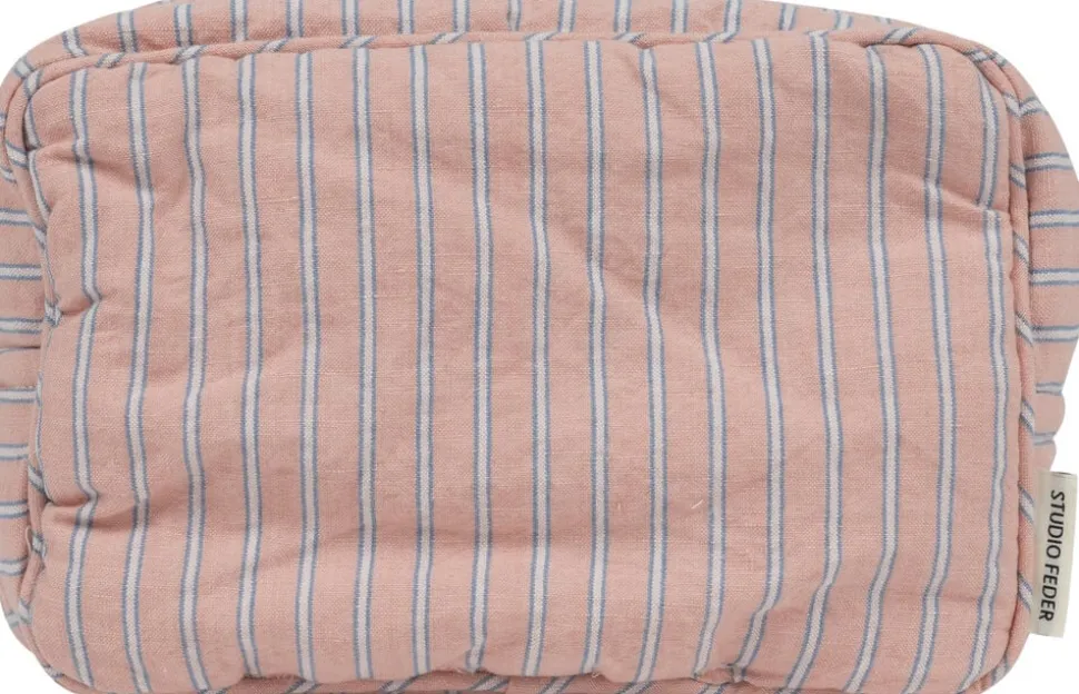 OCS (Organic Content Standard) certificeret toilettaske i en vasket hør- og bomuldsblanding. Vasken gør stoffet blødt og giver toilettasken et smukt, underspillet udtryk. Fyldet i toilettasken er 100% genanvendt polyester. Lukkes med en kraftig lynlås i messing. Mål 23x16x5 cm.