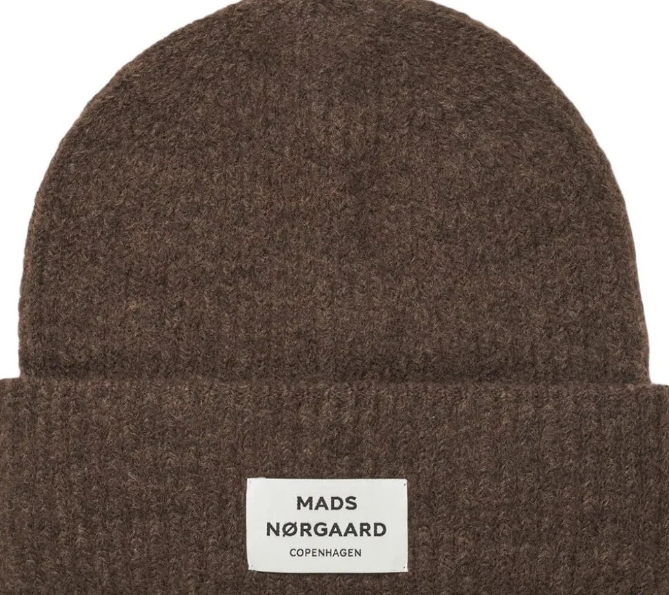 Blød, ribstrikket hue med bredt dobbelt-ombuk og påsyet logolabel.