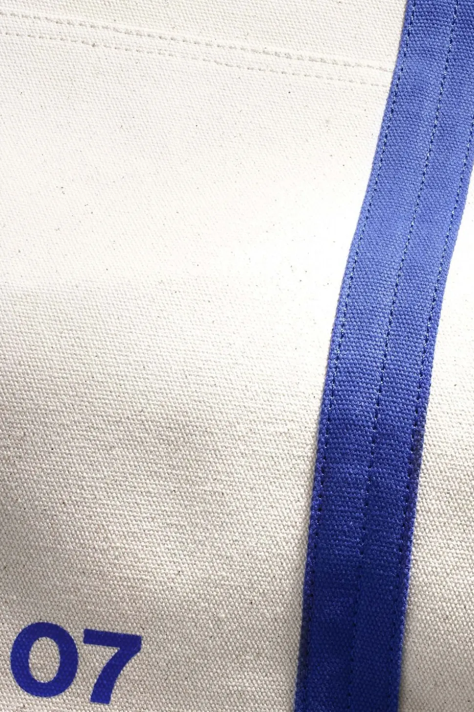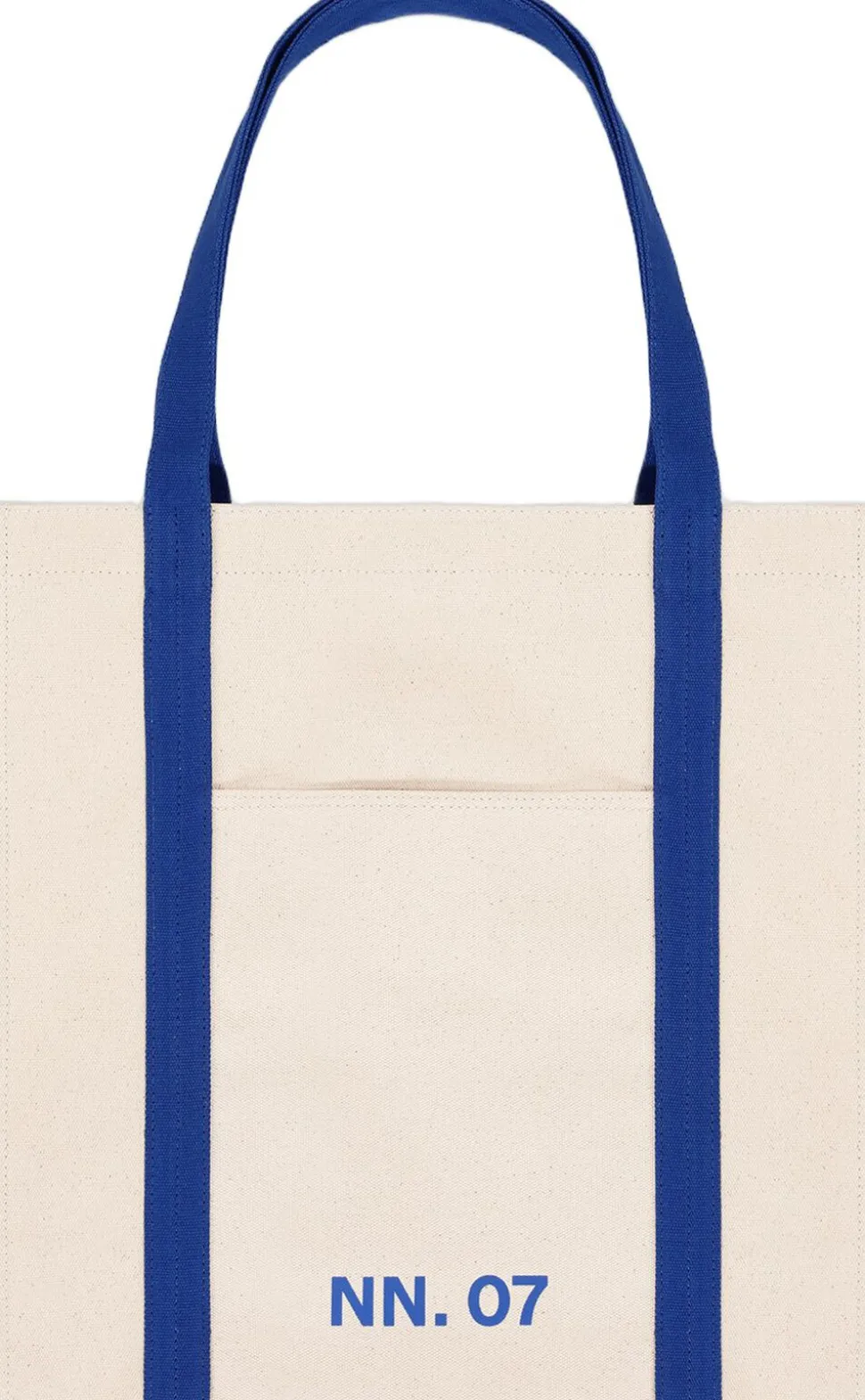 Tote taske lavet af økologisk bomuld og designet med et NN.07-logoprint og kontraststropper