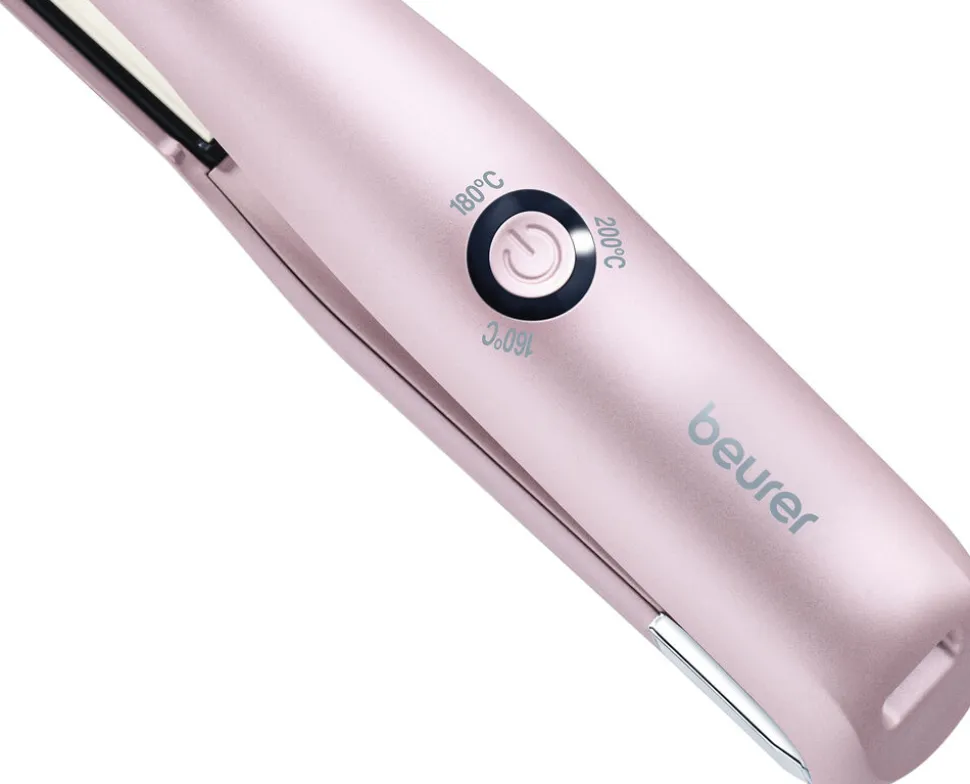 Fiks håret på farten og spar plads i weekendtasken med dette trådløse glattejern fra Beurer