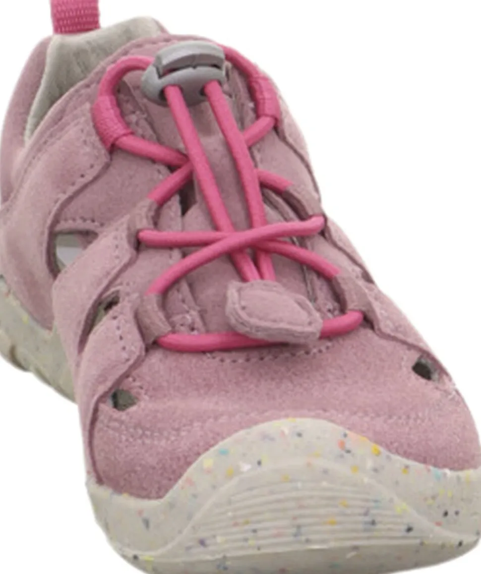 Disse sommerlige, åbne TRACE-superfit-kondisko udstråler en følelse af eventyr med deres afslappede stumpede sål lavet af ultratynd naturgummi. Sammen med den anatomiske sidst, understøtter det den naturlige udvikling af fødderne. Den elastiske quick-release-lukning og den vævede løkke, der står i kontrast til det bløde ruskind, understreger TRACEs cool look.