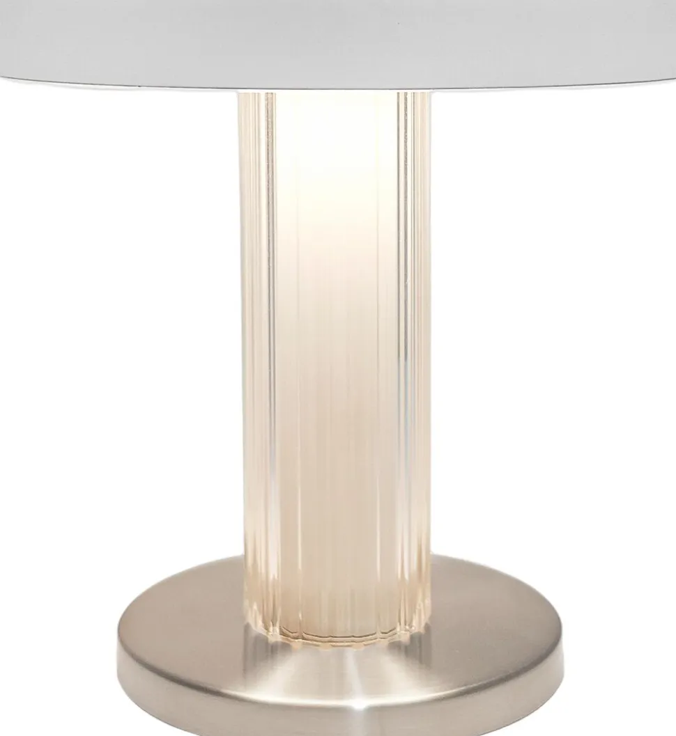 Denne elegante, transportable lampe, Trezzi, er designet af den danske designduo Anker Studio. Trezzi er udført i et moderne og elegant design, der med sit riflede glas drager inspiration fra vintage Art Deco-stil. Dæmp lyset i tre steps på touchknappen for at sætte den perfekte stemning. Lampen oplades nemt med det medfølgende USB-kabel.