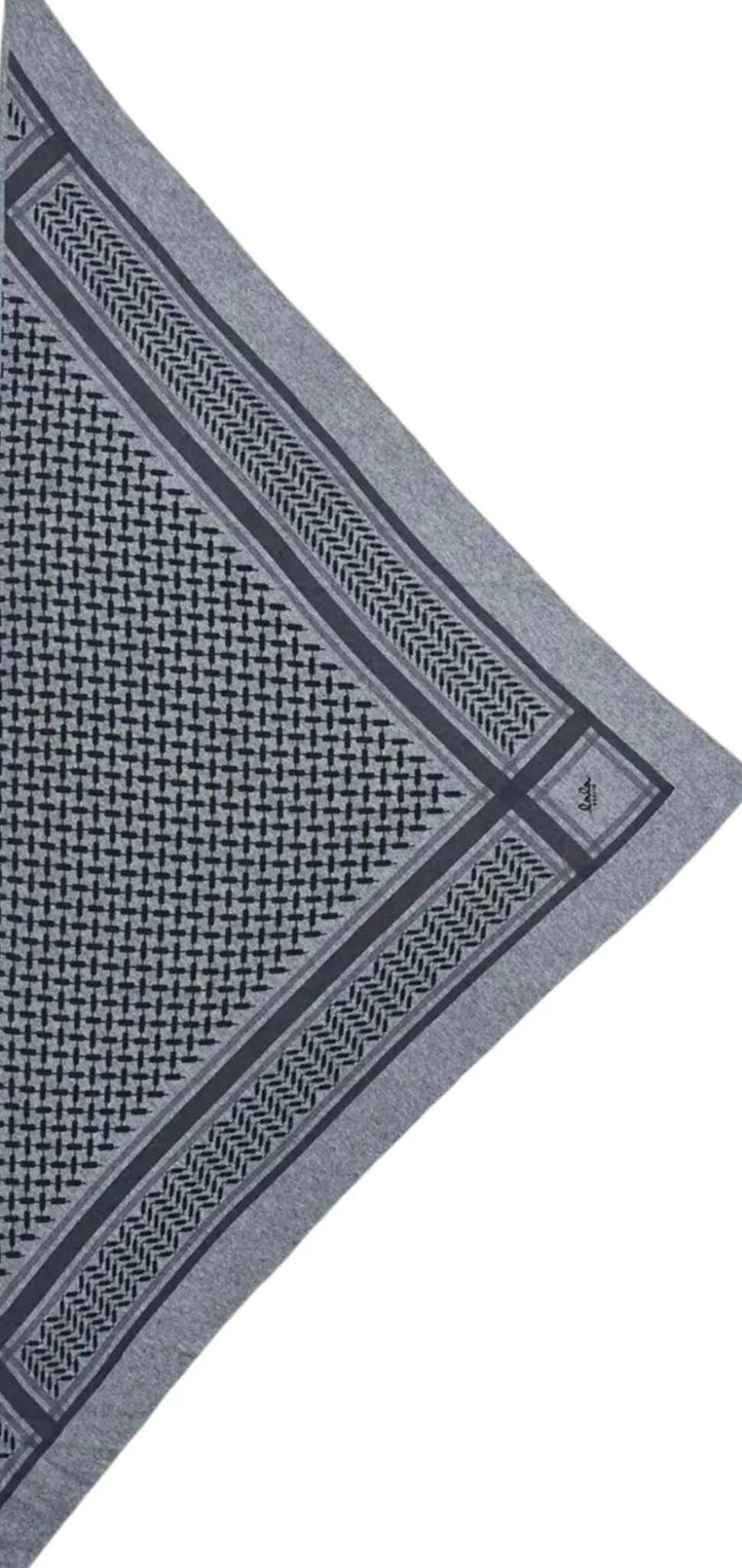 Et luksuriøst blødt, trekantformet cashmere tørklæde, med et klassisk sort Kufiya-print.