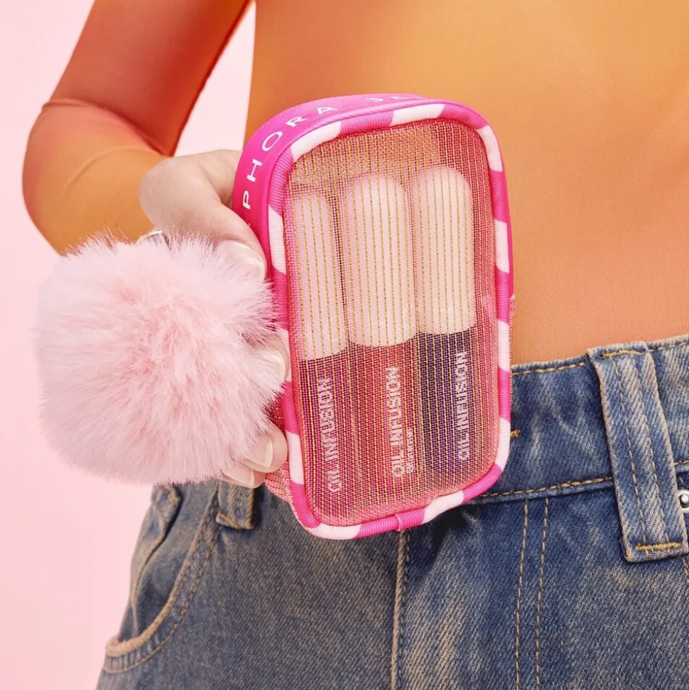 Dette praktiske og elegante etui med guldpomponer er perfekt til at putte dine læbeolier i håndtasken eller rejsetasken. Desuden er det en ideel gaveindpakning til en, du holder af, denne vinter. Behold den til opbevaring af småting efter festlighederne!