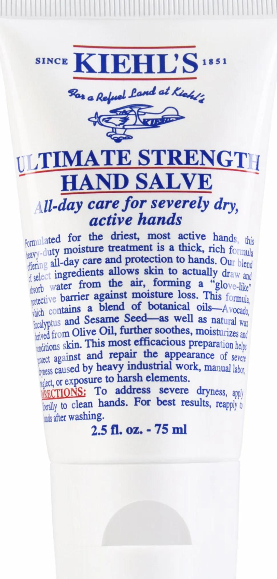 Kiehls Ultimate Strength Hand Salve er en effektiv fugtgivende håndcreme, som plejer tørre hænder uden at efterlade dem fedtede. Denne nærende håndcreme giver pleje til aktive og tørre hænder hele dagen og indeholder avokadoolie, eukalyptusolie og sesamfrøolie, som fugtmætter de tørreste hænder og får dem til at føles bløde.