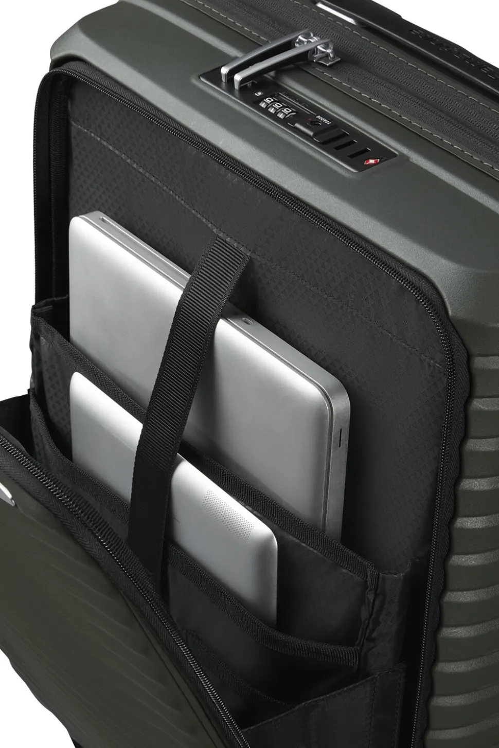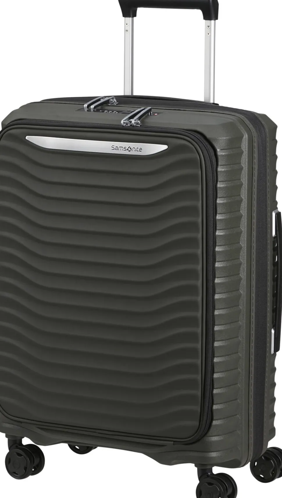 Kabinekuffert med mulighed for udvidelse, praktisk frontlomme med plads til 15,6″” pc og 10,5″” tablet, polypropylen,4 hjul,TSA lås , dobbelt trollystativ, navneskilt, vægt 2,6 kg,rumindhold 42/48 l, 5 års garanti,55x40x23/26 cm.