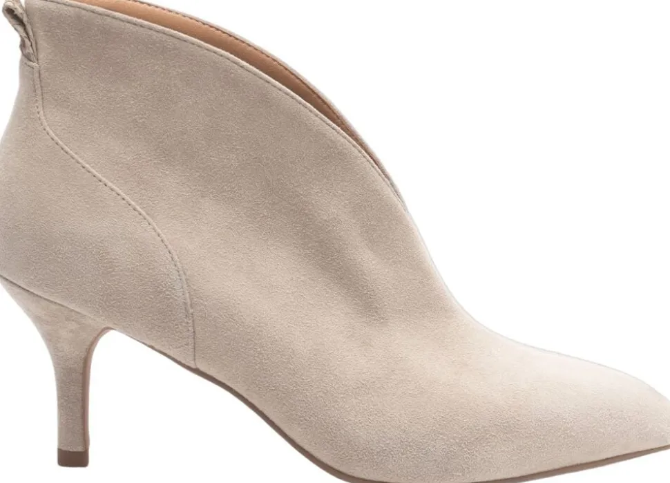Valentin. Denne ankelstøvle er lavet af 100 % certificeret LWG-ruskind og har en spids tå og en struktureret, feminin silhuet. Den indeholder en upcycled fiskelæderdetalje med ASC-certificering og WODENs Natural Soft Technology for ekstra komfort og støtte. Velegnet til dag- eller aftenbrug. – Øverste – 100% LWG-certificeret ruskind – Ydersål- slidstærk tunit med skridsikkert Recycled – Hælhøjde – 7,5 cm – Akselhøjde – 9,5 cm – Detaljer i upcycled fiskelæder med ASC-certificering – WODEN Natural Soft Technology TM