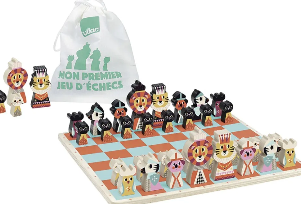 Mit første skakspil. Flotte farver og figurer, designet af den svenske kunstner Ingela P. Arrhenius.