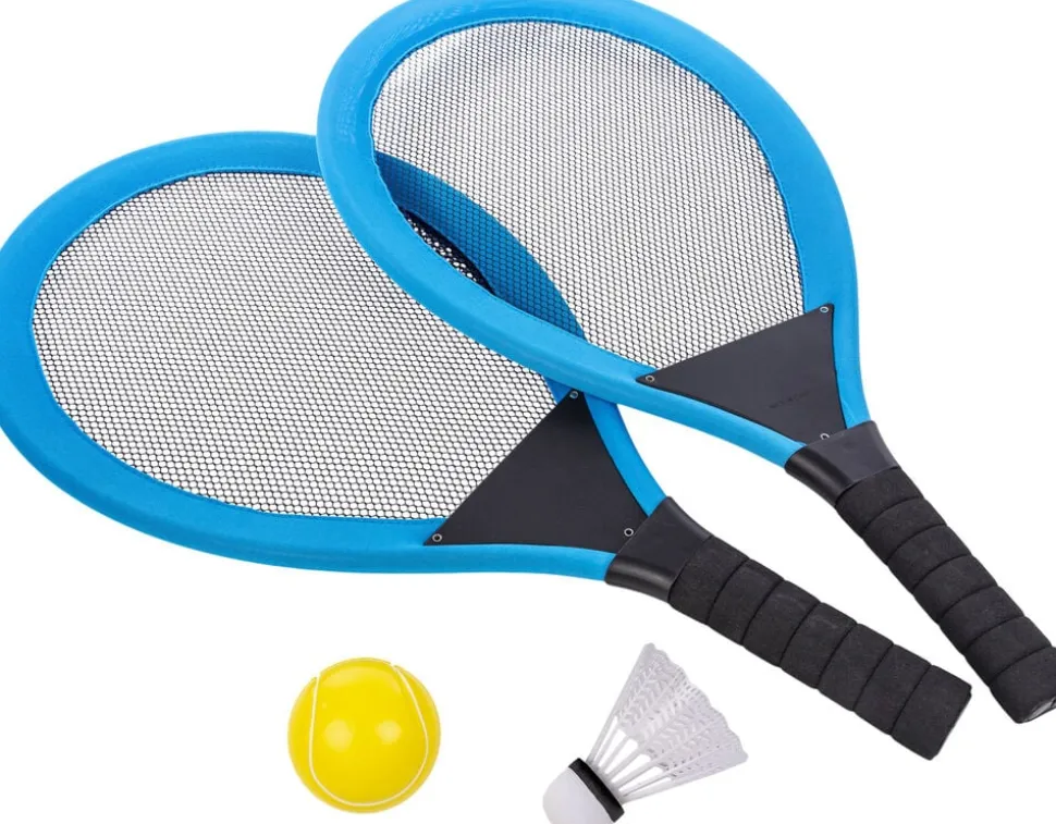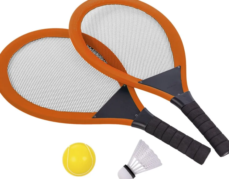 Soft/jumbo tennissæt. 2 store ketsjere med elastisk net og stor fjerbold og bold. NB Ass farver, farve kan ikke vælges