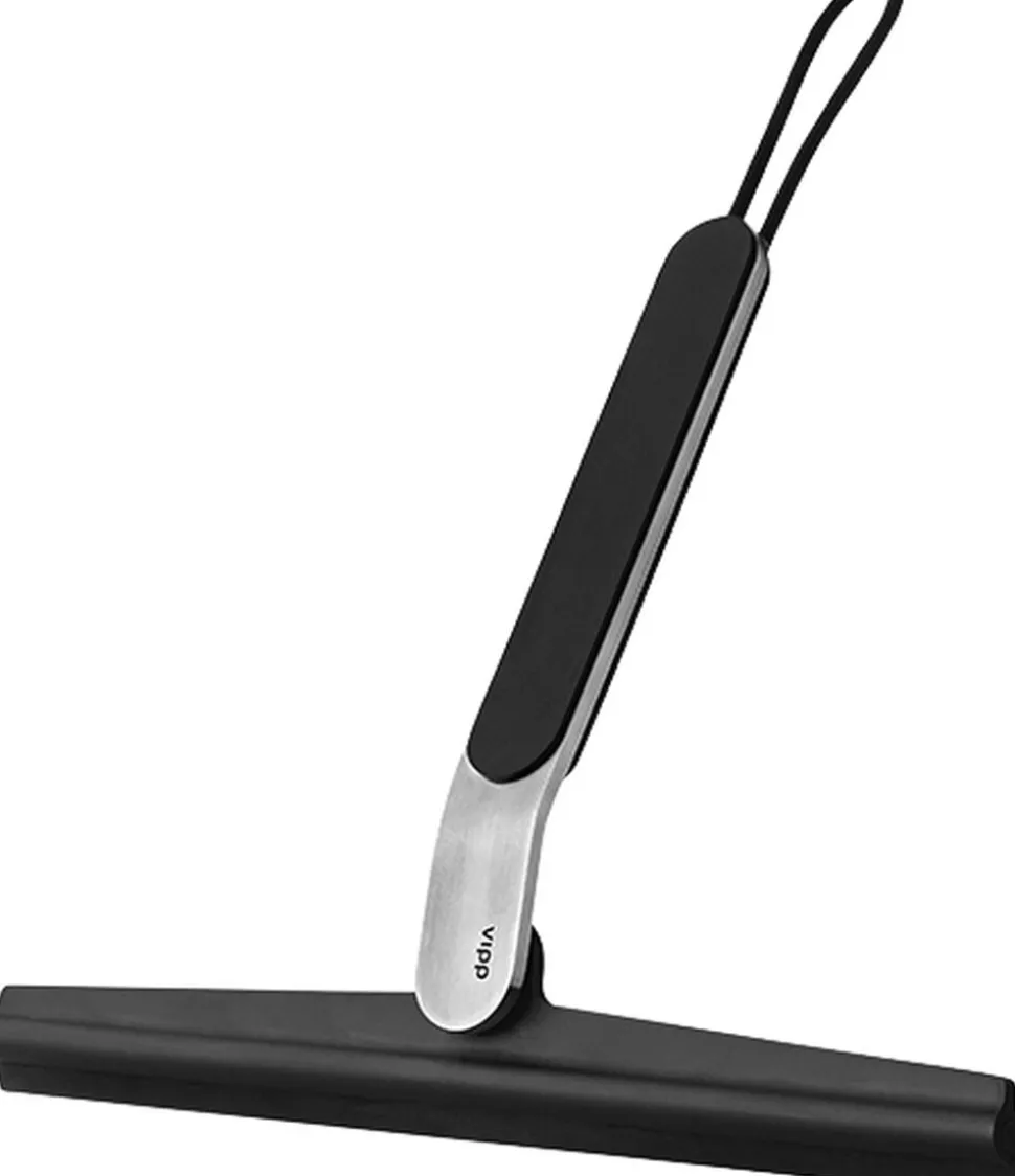 Bruseskraberen har et udskifteligt skraberblad i blødt gummi, der nemt fjerner vand fra glatte overflader. Grebet i gummibelagt, massivt stål har en god tyngde mens de bløde kanter skåner overflader. Gummistroppen gør det nemt at hænge bruseskraberen op efter brug på. Designsproget i Vipp bruseskraberen matcher den øvrige badeværelseskollektion fra Vipp.