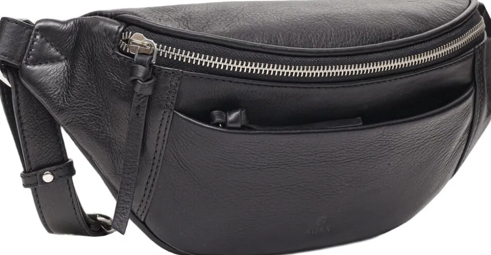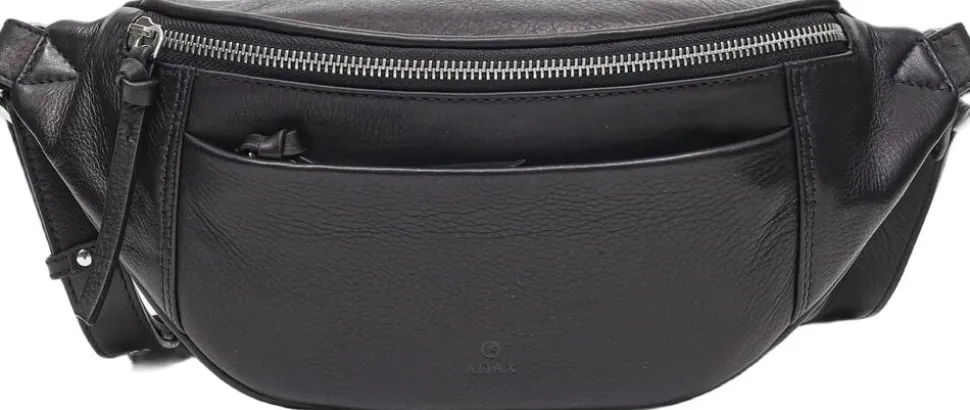 Fenja bumbag i Vittoria skind fra Adax. Rummelig bumbag med regulerbar rem. Tasken har en lynlåslomme både på fronten og på bagsiden. Indvendig består tasken af et åbent rumt samt en lynlåslomme. Der medfølger en tote bag og en garantifolder som kan bruges som kortholder. Tasken plejes med Adax Balsam eller Adax Protection spray.