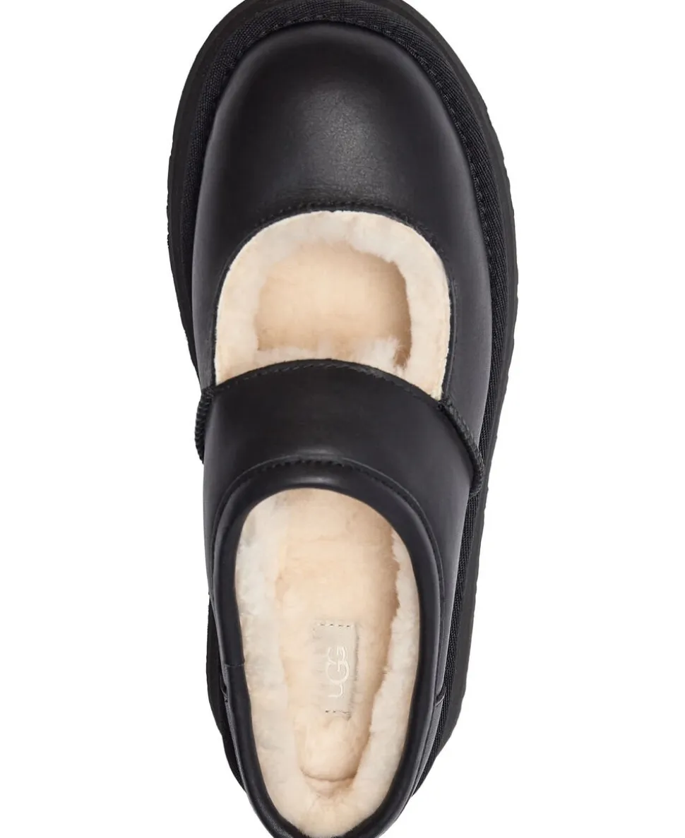 Foret sko fra UGG i en lækker læderkvalitet. Skoen er en ‘Mary Jane’-model med en åbning på fronten, en afrundet snude, et fint kantbånd, logodetalje bagpå samt en cool plateausål. Et par casual sko i den lækreste kvalitet.