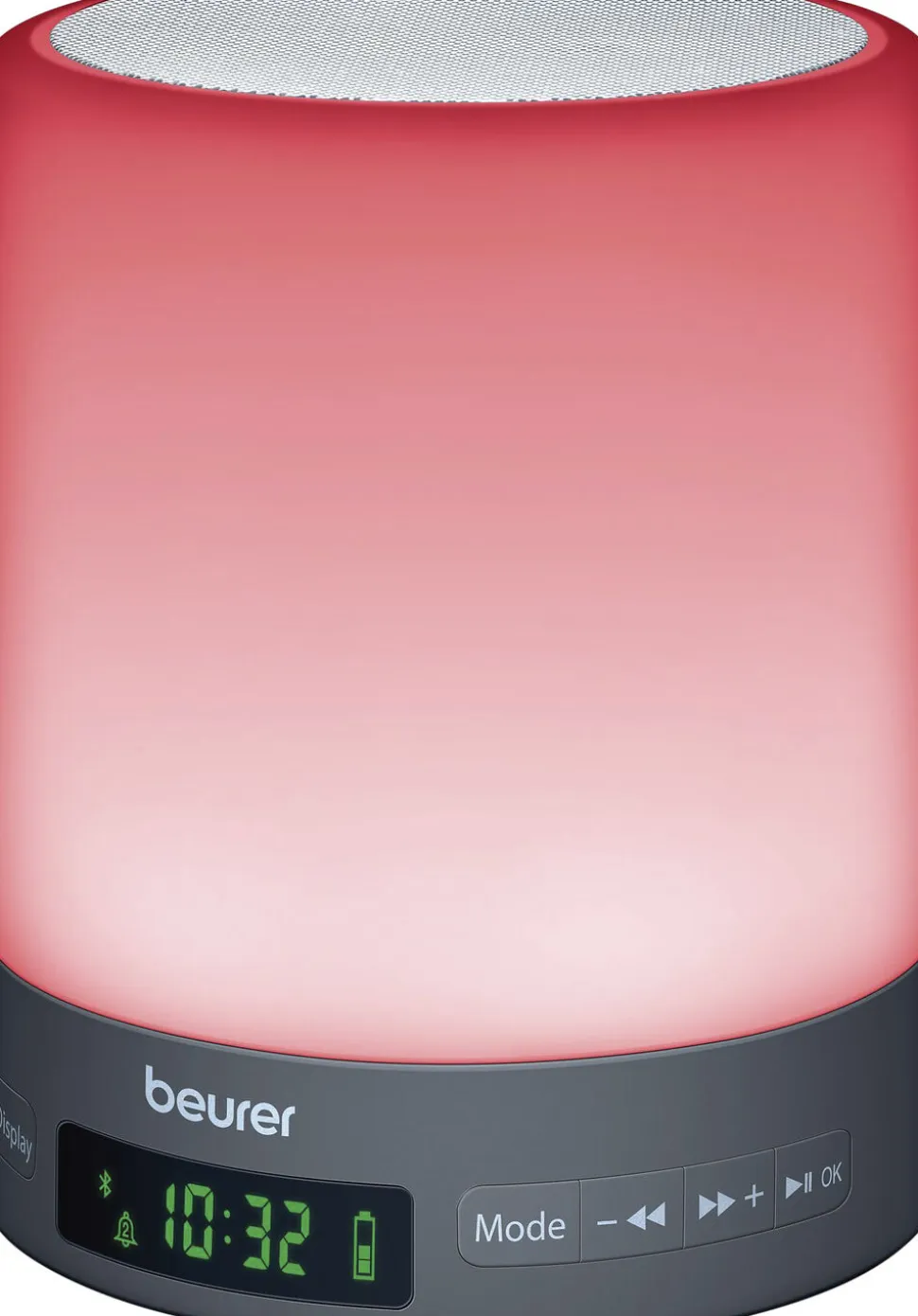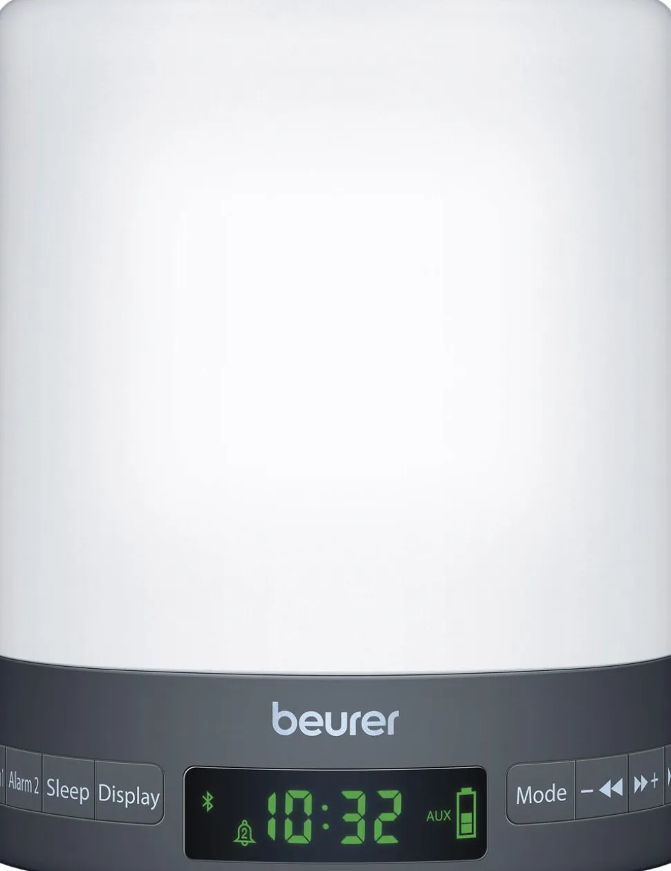Denne wake-up light vækker dig på en blid og naturlig måde om morgenen med simuleret solopgang. Wake-up lampen WL 50 er en multi-funktions lampe, som hjælper dig op om morgenen og ligeledes hjælper dig til at falde i søvn om aftenen. Med simuleret solopgang og solnedgang, hjælper lampen dig tilbage i en naturlig døgnrytme, så du kan få det bedste ud af din dag og falde i søvn på en naturlig og behagelige måde om aftenen. WL 50 har 3 lysstyrker og lyser med 900 lux på en afstand af 10 cm. Wake-up lighten har alarm funktion med indstilling af 2 alarmer, snooze funktion i op til 30 minutter, radio med mulighed for at gemme 10 radiokanaler, 2 wake-up melodier og 1 melodi til at falde i søvn til. WL 50 har også mood light med mange forskellige farver. Som en ekstra feature kan du også afspille din egen musik fra denne wake-up light, da den også fungerer som Bluetooth højttaler. Der medfølger også et AUX kabel til afspilning af musik fra sin mobil via AUX. Lysstyrken i displayet kan også indstilles, så du ikke forstyrres af lyset om natten. WL 50 kan også bruges trådløst, da den er genopladelig. Den kan bruges i ca. 3 timer (med lydstyrke på 15 og lysstyrken på 1). Mikro USB kabel samt USB til stikkontakt adapter medfølger.