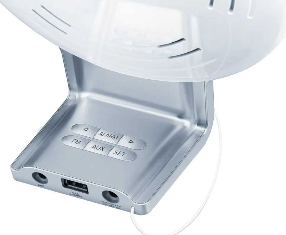 En wakeup light, der både hjælper dig med at vågne frisk og falde lettere i søvn. Vågn til simuleret solopgang og en af de 6 melodier. Fald i søvn til simuleret solnedgang og en af de 4 søvndyssende melodier. Den har Mood Light og 256 forskellige farvenuancer, som let kan indstilles i den gratis app Beurer LightUp. WL 75 har desuden radiofunktion med hukommelse til 10 kanaler. Du kan også tilslutte din smartphone og lytte til din egen musik, via det medfølgende AUX kabel. Den har både alarm- og snoozefunktion på 1-30 min. Den lyser med op til 2000 lux.