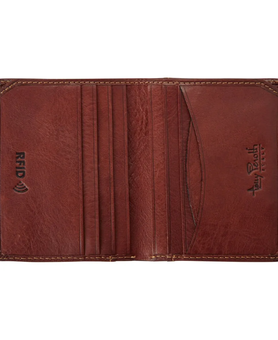 Denne praktiske kortholder fra Tony Perotti tilbyder 11 lommer til dine kort samt en ekstra lomme til sedler og kvitteringer. Den kompakte størrelse gør den nem at have med i enhver lomme. Fremstillet af autentisk italiensk læder, der er både stilfuldt og miljøvenligt. Kortholderen beskytter dine kort mod skader, snavs og elektronisk tyveri af kortdata med RFID beskyttelsen. En elegant og sikker løsning til dine værdigenstande.