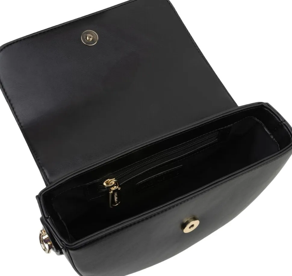 Denne skuldertaske fra Wannabe Re-serien fra Valentino Bags kombinerer stil og funktionalitet på smukkeste vis. Fremstillet af luksuriøst, glat PU-læder og udsmykket med guldfarvet hardware. Leveres med to skulderremme: en elegant justerbar rem og en kæderem flettet med PU-læder, fremhævet af et guldfarvet Valentino-logodetalje. Den markante logoplade på fronten og det bløde polyesterfor fuldender looket.