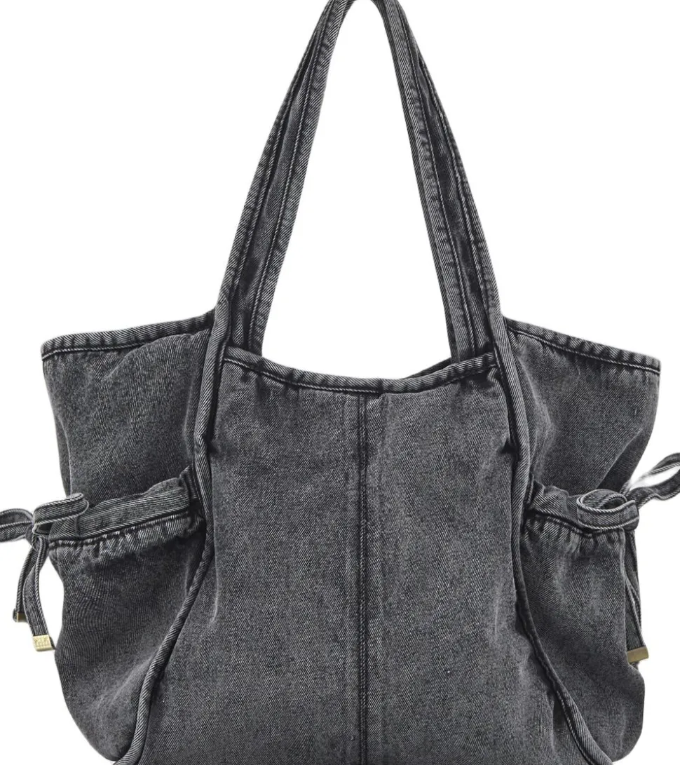 Washed Denima Laurel Bag fra Becksöndergaard er en rummelig taske, som indeholder et stort rum hvori der er en lynlås lomme på indersiden af tasken. Den er udstyret med to fine lommer på hver side af tasken, som spændes ind med snøre, for at give tasken en ekstra detalje. Tasken lukkes med en lille metal hook & eye. Tasken måler 34 x 30, og kan rumme en laptop på 13 tommer og kan enten bæres i hånden eller over skulderen. Den er designet i 100% bomuld.