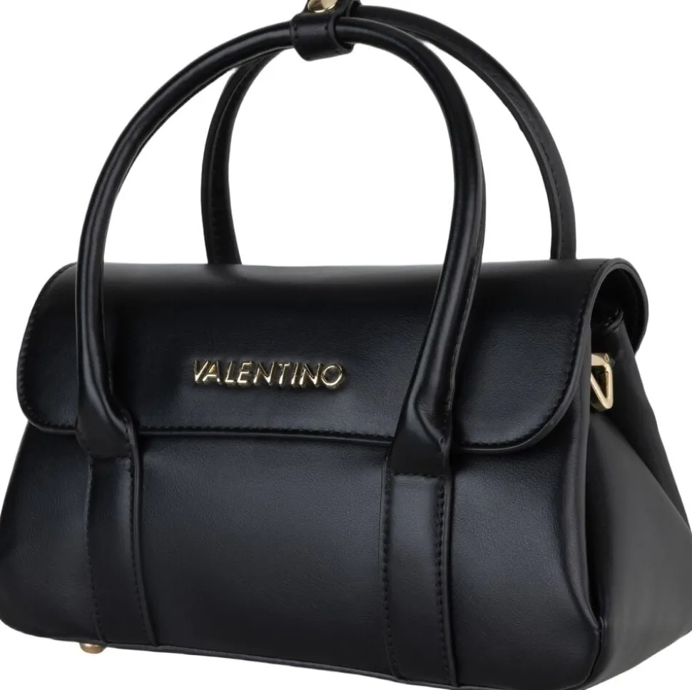 Kompakt Valentino Bags Kompakt-håndtaske fra West Re-serien er fremstillet af glat PU med en elegant finish. De buede tophåndtag og den diskrete flaplukning skaber en tidløs silhuet, mens den aftagelige skulderrem giver alsidighed til dage på farten. Tasken er fuldendt med let guldtonet hardware og det kendte Valentino-logo for det forhøjede touch