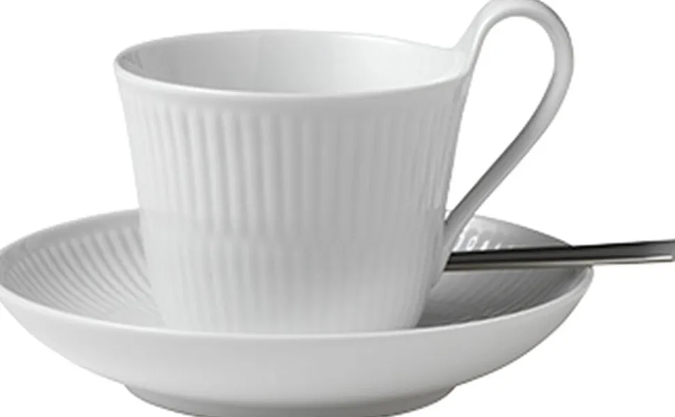 Hvid Riflet 25 cl. højhanks kop med underkop er mere end bare en kop. Det er et stykke kunst, der tilføjer et strejf af elegance til dit kaffebord. Uanset om du køber den til dig selv eller som en gave, er denne kop et sikkert hit.