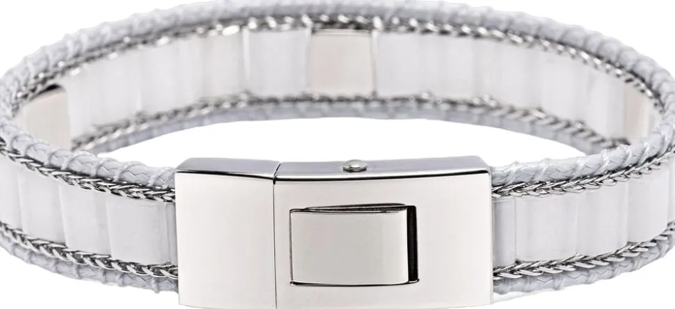 White Jade Stud-armbånd til kvinder, 10 mm armbåndsbredde, 6 mm hvide Jade-perler, børstet lås i rustfrit stål af høj kvalitet og stropper, vævet streng og kædedetaljer. Håndlavet i Los Angeles