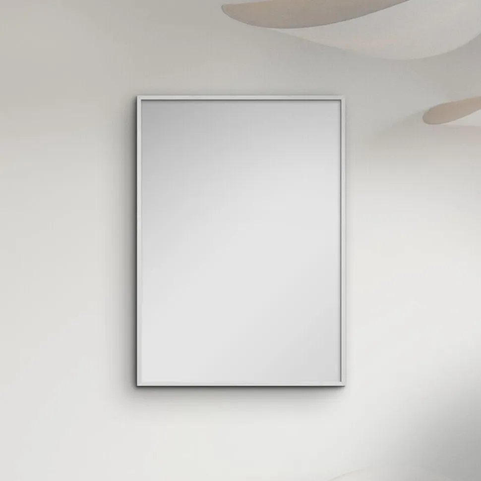 White Wood Mirror A5, Dette A5 spejl kombinerer enkelhed med funktionelt design, omfavnet af en smal, hvid træramme og afspejler værdierne af klassisk, dansk håndværk.