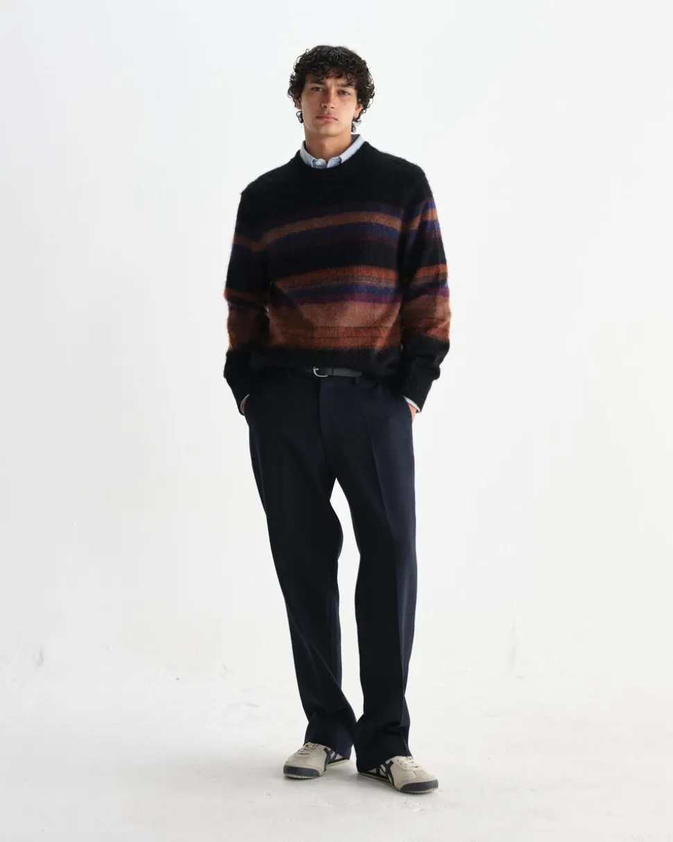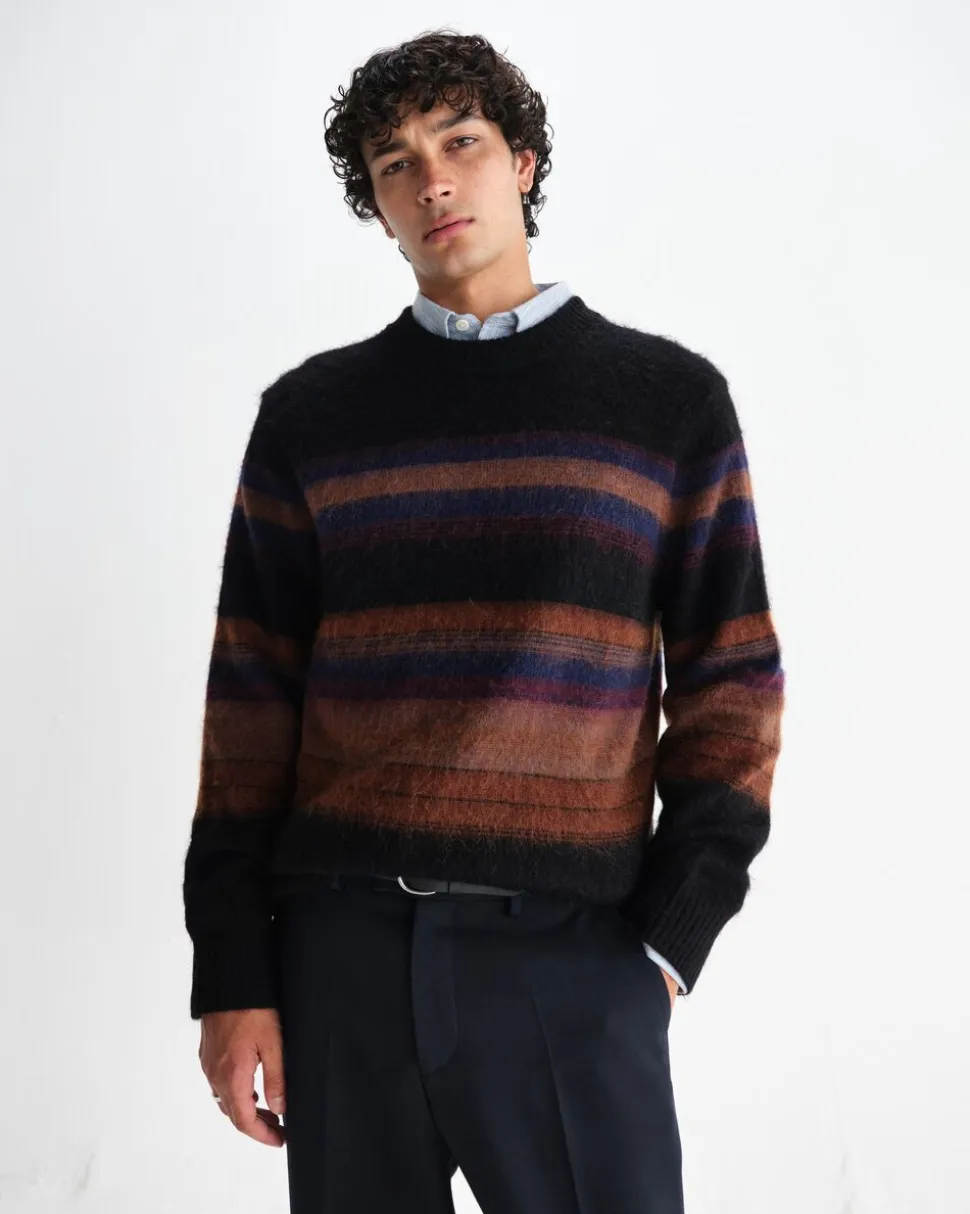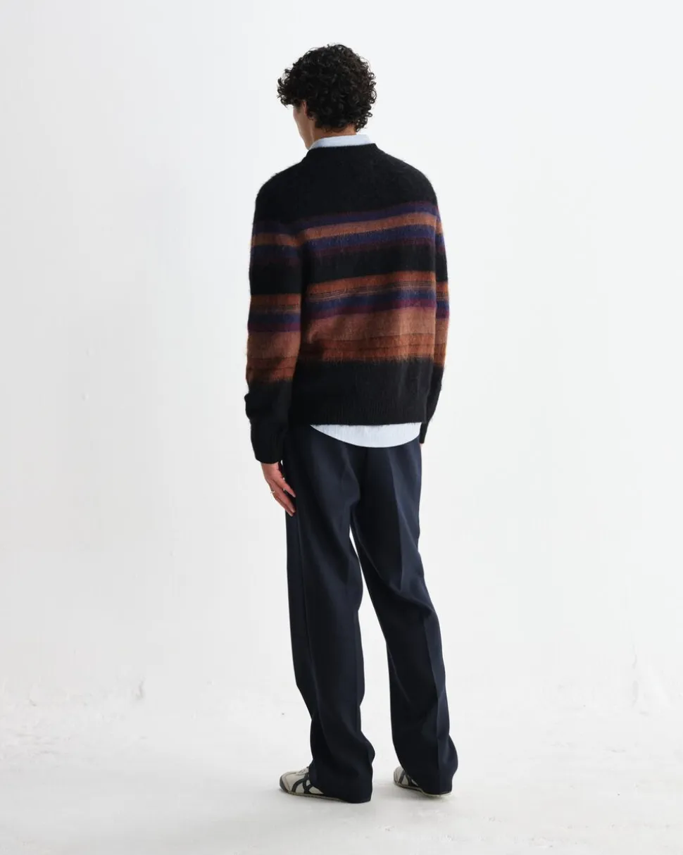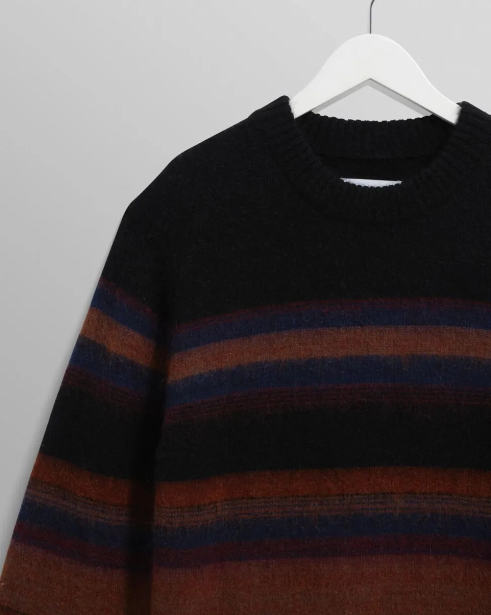 Wilde crewneck trøjen har en afslappet pasform og er fremstillet af en dunet mohairblanding. Den har et ribstrikket halsbånd, kant og manchetter. Denne kamelfarve er ny i Voks AW25.