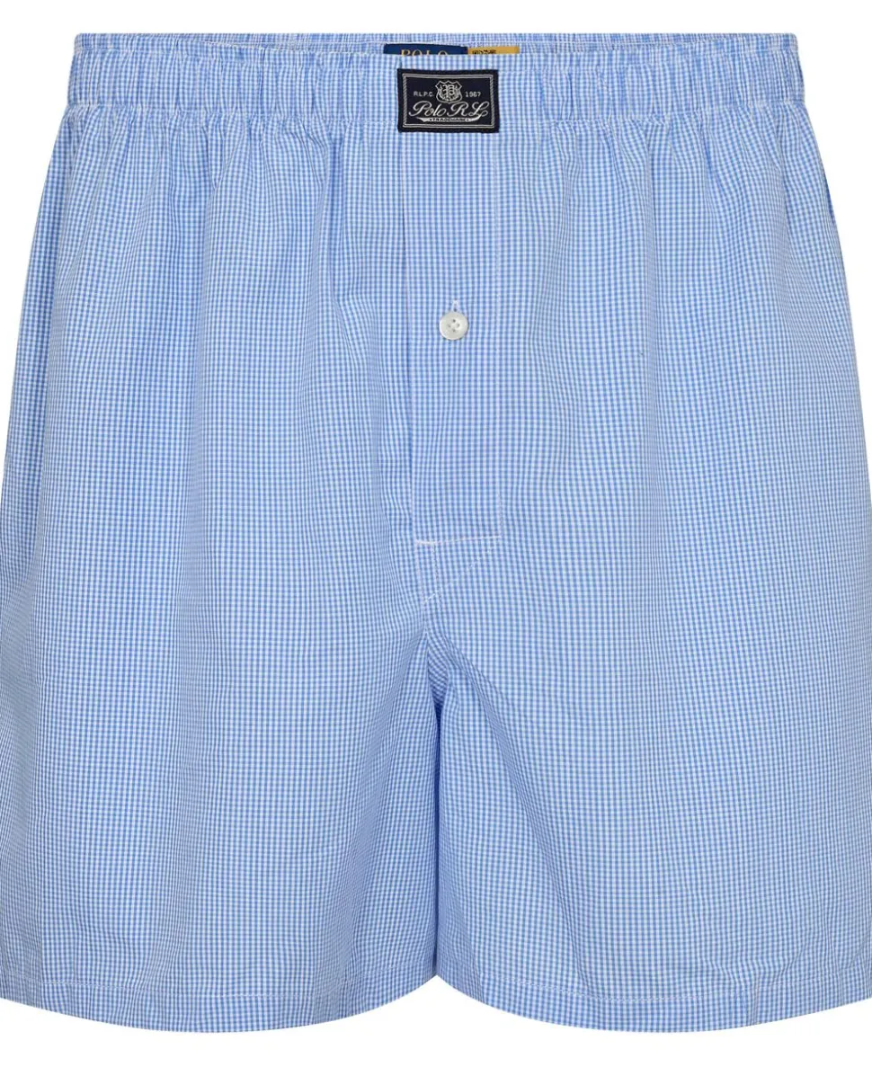 Denne behagelige bomuldsbokser har et klassisk vinduesrudemønster og Polo Ralph Laurens karakteristiske broderede pony.