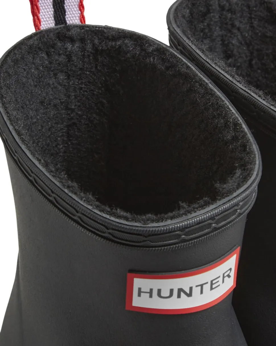 Spil kort isoleret støvle. Håndlavet polyesterfor imiteret pels og tilføjet termisk isoleringsindersål. Træk i tappen for nem fodadgang og fladere sål med vinklet blokhæl for ekstra komfort. Vandtæt.