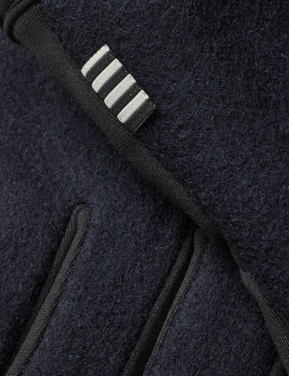 Handsker med filtet uld på håndryggen og blødt, fleksibelt stof på håndfladen. Og en finger med modstand til fingertouch på mobilen.